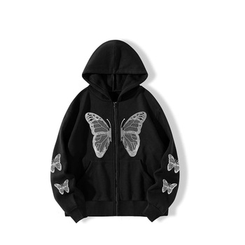 נשים y2k פרפר zip למעלה קפוצ 'ון גדול מדי הדפס סווטשירט הבציר באגי גרירה אסתטית